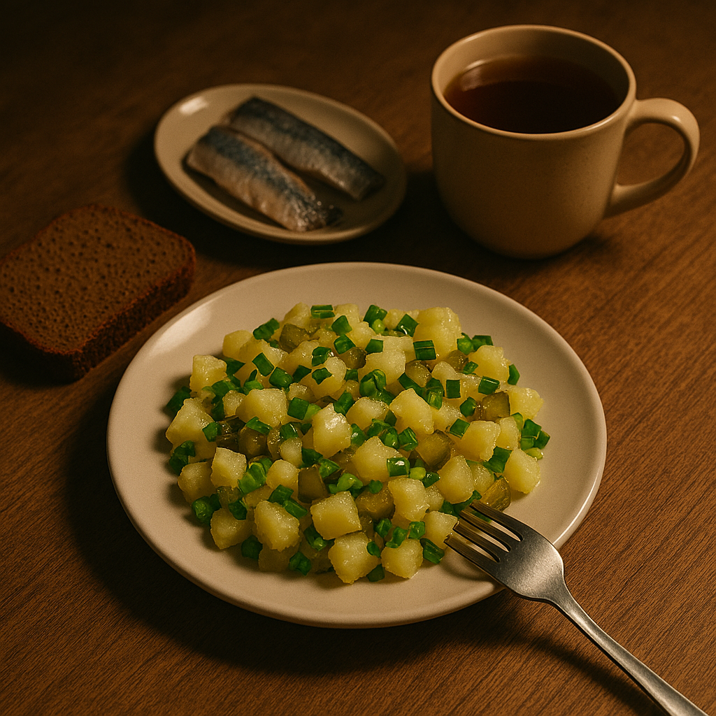 Салат из картошки, солёного огурца и зелёного лука — именно такой.