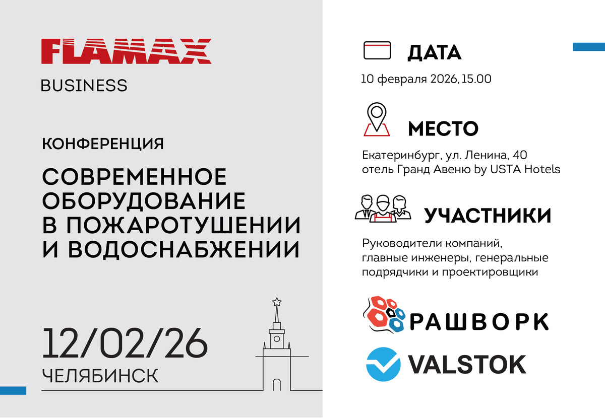 12 февраля 2026, 15.00 в Челябинске, ул. Труда, 153, отель «Малахит» состоится конференция для проектировщиков, инженеров и руководителей организаций FLAMAX BUSINESS. УЧАСТИЕ - БЕСПЛАТНО, необходима регистрация. РЕГИСТРАЦИЯ ПО ССЫЛКЕ ЦЕЛЬ