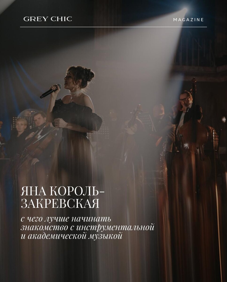 » Несмотря на возрождение интереса к классической музыке — мифы, предубеждения и стереотипы мелькают в сознании людей. Вместе с Яной Король-Закревской, академической певицей, оперным режиссером и лауреатом Всероссийских конкурсов и международных оперных фестивалей мы поговорил, как сегодня воспринимается классическая музыка, о смешении жанров и новых форматах и что значит быть современным слушателем. В карточках собрали рекомендации от Яны, с чего лучше начинать знакомство с инструментальной и академической музыкой. Полное интервью читайте в новом материале в онлайн-издании. GREY CHIC