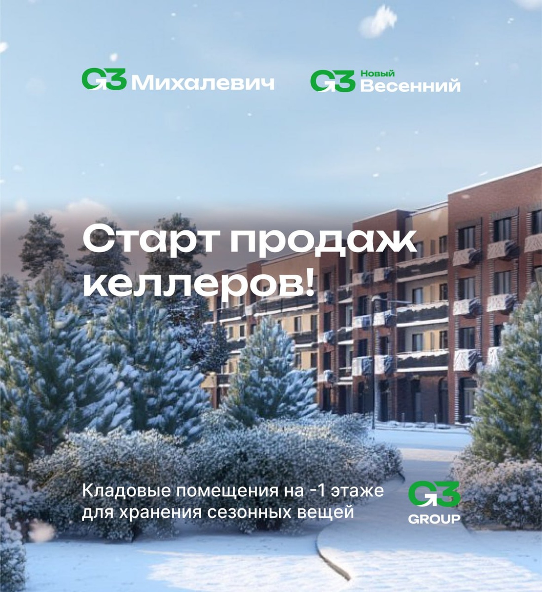 Не знаете, куда деть сезонные вещи? Сразу скажем... балкон — для отдыха, а не для хранения! А в коридоре или гардеробной не всегда хватает места. Все это не беда, ведь кладовки на -1 этаже решат вашу проблему. Именно здесь лыжи, велосипеды, снаряжение и другие вещи, которые нужны лишь время от времени, будут в полной безопасности ждать дня, когда они снова понадобятся. Почему вам нужна кладовка? ✅ Отдельное личное помещение для хранения ✅ Больше простора без лишних вещей дома ✅ Удобная локация: продажи стартуют в двух проектах — G3 Михалевич и G3 Новый Весенний, а также к покупке доступны келлеры в G3 Театральный Важно знать! Вы можете приобрести одну или несколько кладовок для хранения своих вещей или в качестве выгодной инвестиции. Например, сдавать помещения в аренду другим жителям. Хватит думать, где все разместить. Освободите свое жизненное пространство! Звоните, чтобы забронировать кладовое помещение или выбирайте на сайтах проектов G3 Михалевич +7 (495) 241-65-17 G3 Театрал