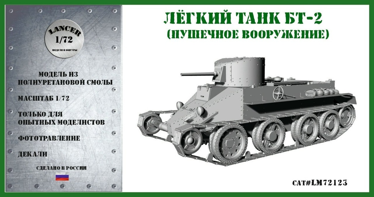 LANCER из Москвы выпускает модель БТ-2 с пушечным вооружением в масштабе 1/72 из полиуретановой смолы с выращенной на 3Dпринтере ходовой