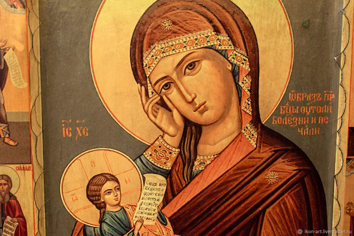 Бывают дни, когда боль — не просто симптом, а постоянный фон жизни. Когда врачи разводят руками, а ты сам уже не веришь в выздоровление. Именно в такие моменты отчаявшихся людей ведет к удивительной иконе — «Утоли моя печали». Её история начинается с чуда, которое дарит надежду, когда, кажется, надеяться не на что. В 17 веке одна знатная женщина долгие годы страдала от тяжелой болезни. Ноги отказывали, лекарства не помогали, силы были на исходе. В забытьи ей явился образ Богородицы и голос, повелевавший ехать в Москву, в храм святителя Николая в Поповше, найти там икону «Утоли моя печали» и молиться перед ней. Женщина с огромным трудом исполнила указание. В храме она не могла найти знакомый образ, пока священник не велел принести иконы с колокольни, где они хранились в забвении. Когда же её взору предстала почерневшая от времени икона, больная воскликнула: «Она!» После усердной молитвы на молебне она встала с одра здоровой. С этого дня икона прославилась как чудотворная. На иконе Богом