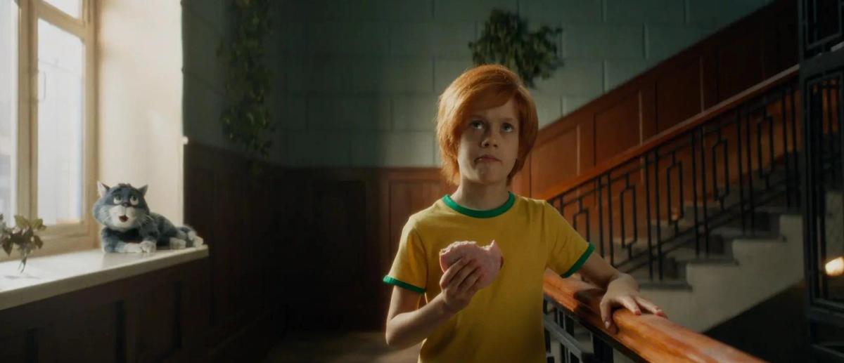Это кадр из фильма «Простоквашино», снятого в 2025 году режиссером Сариком Андреасяном для «Кинокомпании братьев Андреасян». Актер Роман Панков, глядя в камеру, сильно задумался: а правильно ли он поступил, согласившись сняться во всем этом проекте всего лишь за бутерброд? Эта мысль, как будто читается в его глазах… При просмотре мультика складывается ощущение, что для создания своего нового ремейка под названием «Простоквашино» автор адаптации не ознакомился с оригинальной повестью Эдуарда Успенского. Вместо этого режиссер посмотрел два старых советских мультфильма, «Трое из Простоквашино» и «Каникулы в Простоквашино», затем переснял их с живыми актерами, основательно ничего не меняя внутри сюжета. Однако он растянул «хрон» до 1.5 ч и в этой творческой авантюре поплыло абсолютно все... Если режиссер предпочитает снимать в своих фильмах родственников, знакомых и комиков, которые стремительно теряют популярность то это нам с лёгкостью объясняет образ двух стереотипных милиционеров