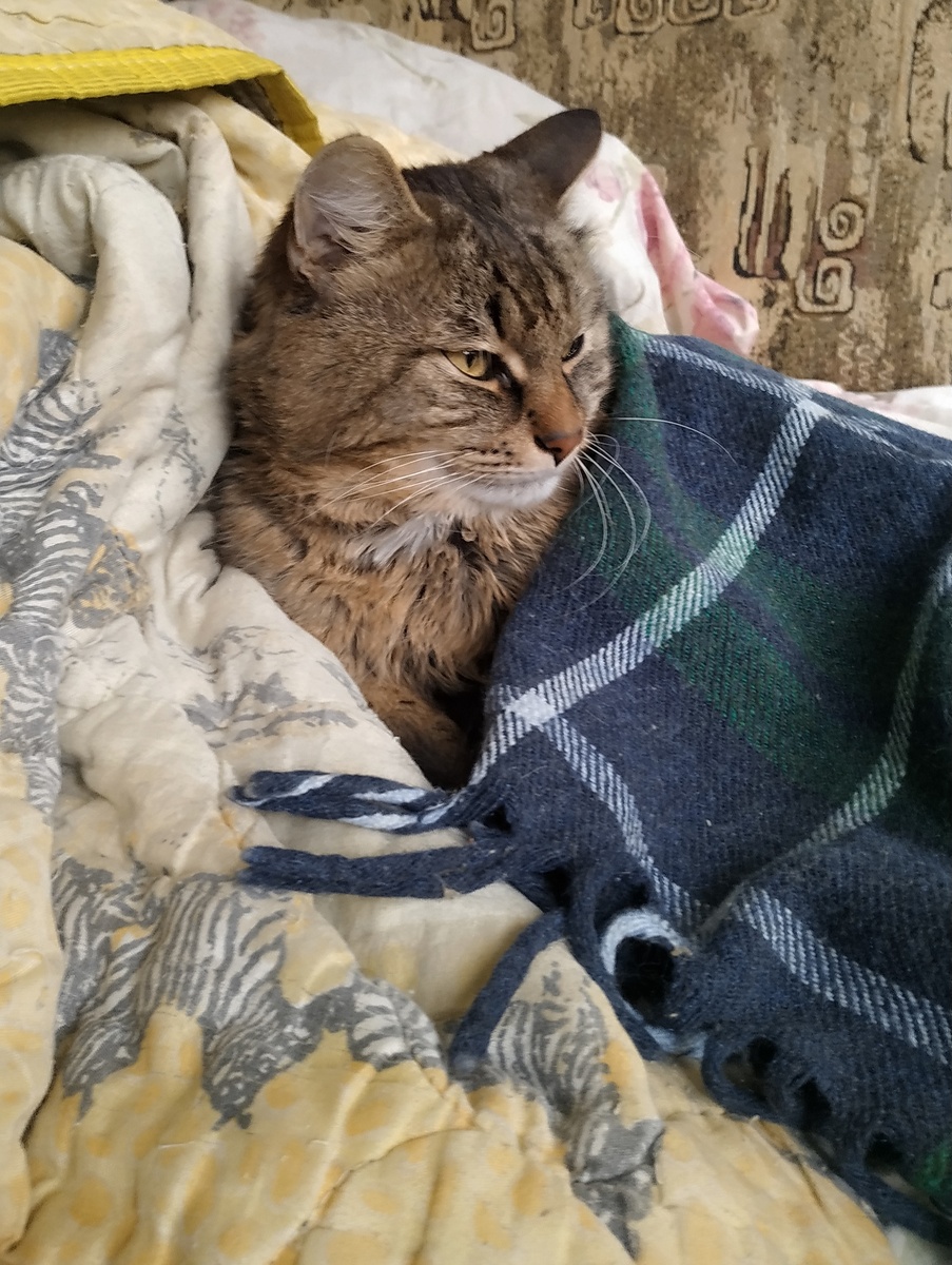 Под тёплым пледом Кот лежит,