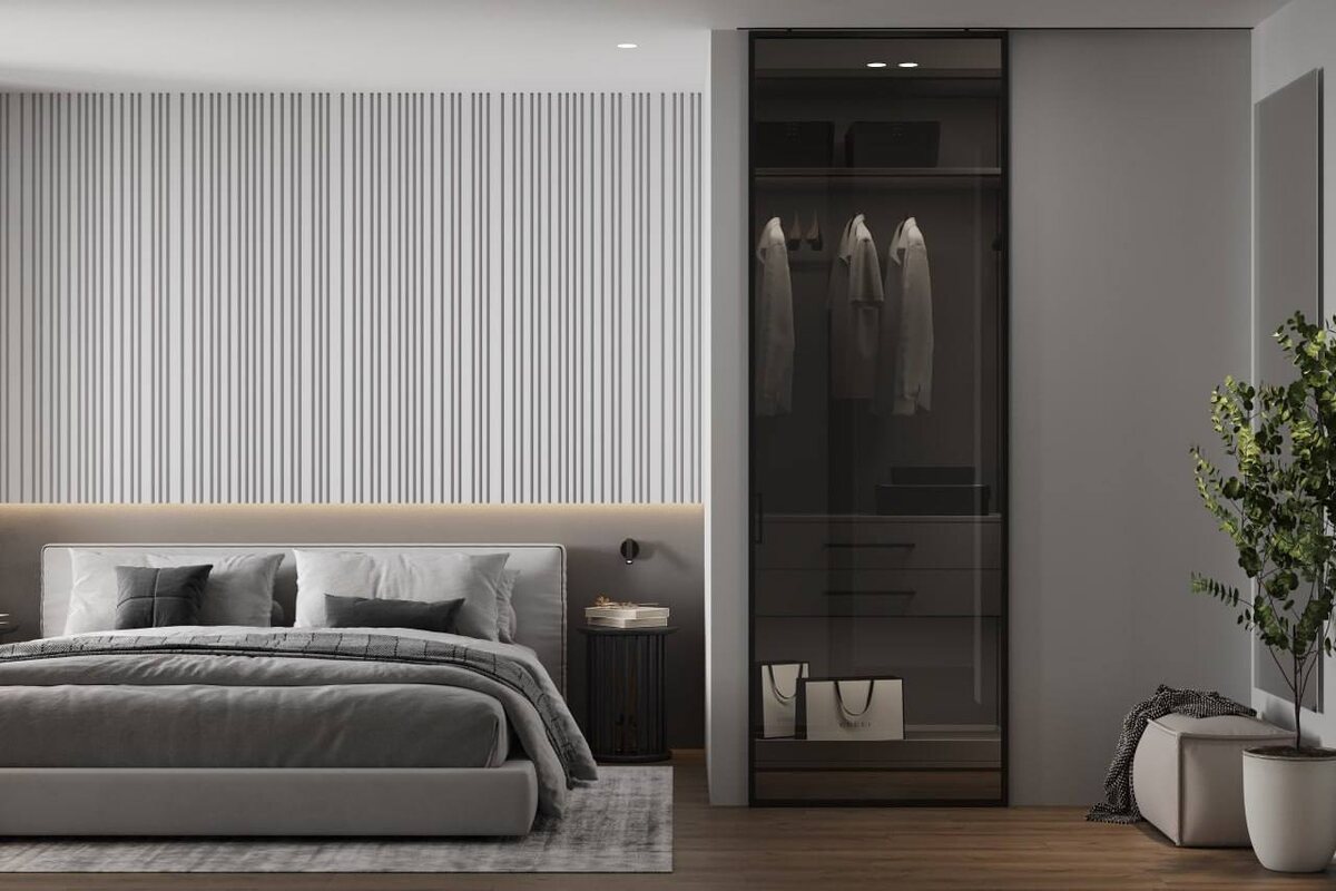 🚪 В современном интерьерном дизайне функциональность и эстетика идут рука об руку, создавая пространства, которые не только удобны, но и радуют глаз.✨ Раздвижные двери AG являются воплощением премиального подхода к организации пространств. Изготовленные с использованием высококачественных материалов и современных технологий, они позволяют создавать стильные и эффективные решения для любого интерьера. В данном проекте они играют ключевую роль, служа не только средством разделения зон, но и акцентным элементом всего пространства.✨ Гардеробная, разделенная раздвижными дверями AG, получает дополнительную гибкость в использовании. Благодаря стеклянным вставкам, такие двери позволяют сохранять ощущение простора и легкости, не перегружая интерьер. 🚪 Этот проект доказывает, что грамотное зонирование с использованием премиальных раздвижных дверей ProfilDoors открывает новые возможности для создания функциональных и эстетически привлекательных интерьеров. ✨