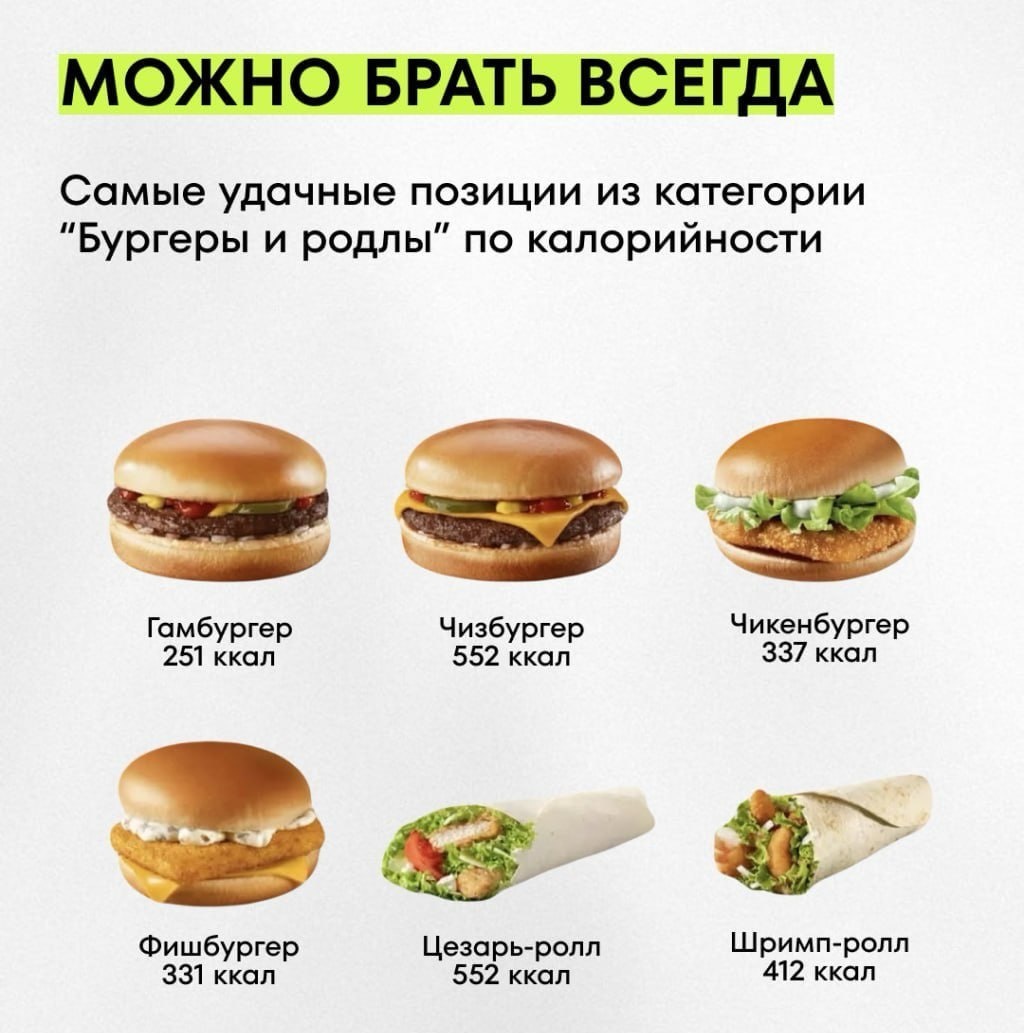 Забираем меню для ПОХУДЕНИЯ во «Вкусно — и точка» — нутрициологи выкатили подборку блюд, которые не вредят фигуре и позволяют есть фастфуд
