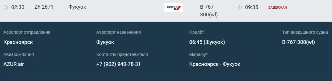 Вылет рейса Azur Air по Вьетнам вновь перенесли Комментарий авиаперевозчика публикует пресс-служба аэропорта Красноярск. Из-за продолжительного ремонта Boeing 767, в Красноярск из Перми прилетит резервный борт. Прилет ожидается в 01:00. Вылететь на Фукуок пассажиры по плану смогут в 02:30. «Просим пассажиров рейса ZF-2671 следовать инструкциям представителей авиакомпании, сотрудников наземных служб международного аэропорта Красноярск. Авиакомпания предоставит все услуги в соответствии с Федеральными правилами. Безопасность – главный приоритет», – говорится в сообщении. Транспортная прокуратура организовала в зале международных рейсов приемную. Также, если ваши права нарушили в период задержки рейса – можно обратиться к дежурному прокурору Западно-Сибирской транспортной прокуратуры по телефону: +7 (913) 921-70-00. Фото: Западно-Сибирская транспортная прокуратура ТВК