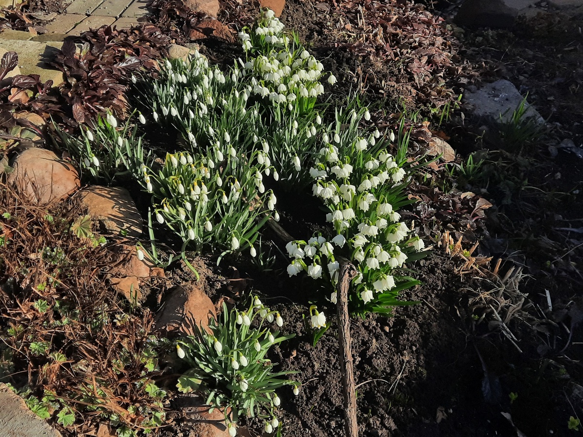 В марте белый цветник почти полностью в снегу. И только на его верхней части зацветают подснежники и белоцветники.