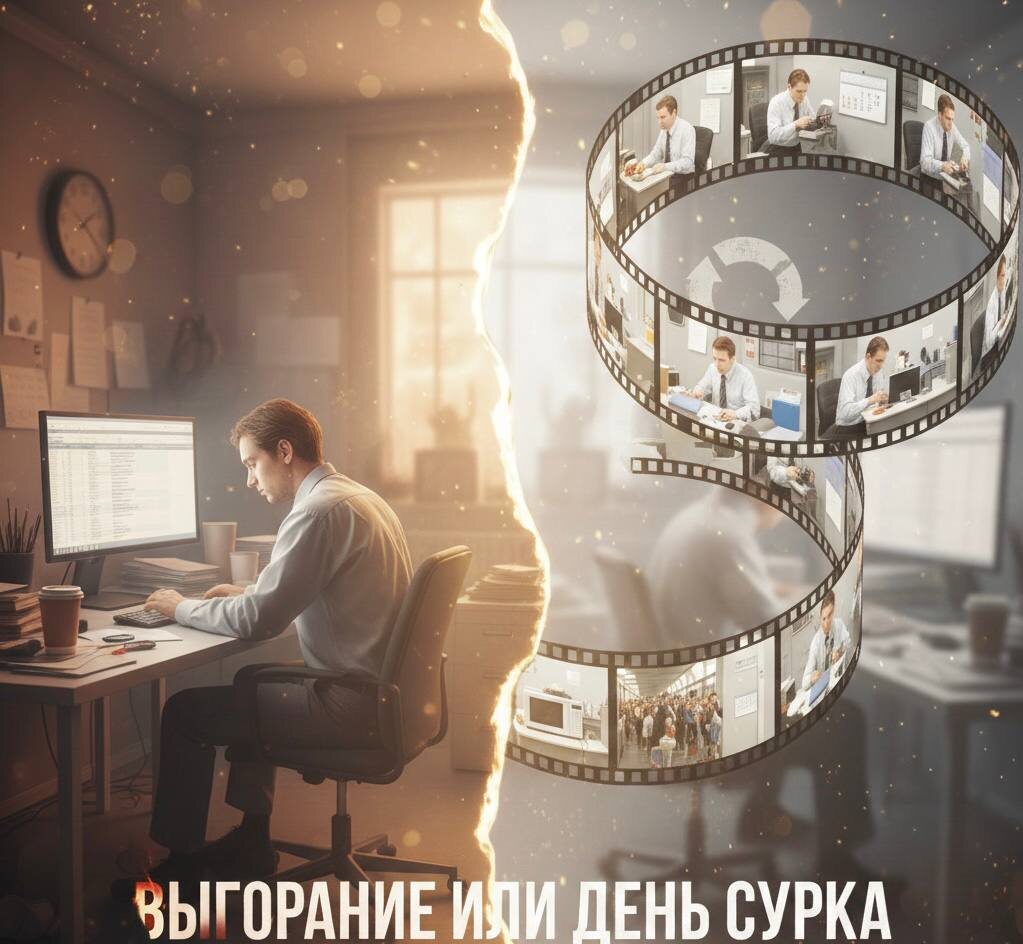 Эмоциональное выгорание или день сурка? Как отличить одно от другого Бывает такое состояние, когда просыпаешься уже уставшим, всё раздражает, а работа, которая раньше нравилась, теперь кажется бессмысленной? Или, наоборот, когда вроде бы всё стабильно и неплохо, но дни настолько похожи друг на друга, что сливаются в одно серое пятно, а внутри пустота и скука? Эти два состояния часто путают. Их называют и выгоранием, и застоем, и кризисом. Но на самом деле эмоциональное выгорание и день сурка — это разные процессы, и помощь в каждом случае нужна разная. Если лечить скуку как истощение, можно стать ещё более несчастным. А если истощение пытаться развеять новыми хобби, можно окончательно загнать себя. Так в чем же основное отличие? Представьте разницу между пожаром и болотом. 🟧Эмоциональное выгорание — это пожар. Он возникает после периода высокой вовлечённости и стресса (на работе, в заботе о близких, в проекте). Огонь, как ваши ресурсы: энергия, энтузиазм, сострадание. Когда всё догоре
