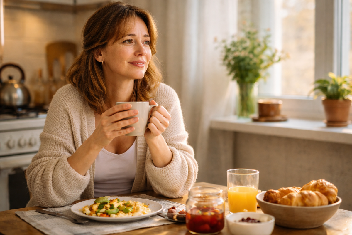 Я сделала себе завтрак. Себе — в первую очередь. Не “когда останется время”. Я наложила кашу и села. И это было почти революцией: женщина сидит и ест, пока другие сами ищут свои носки.