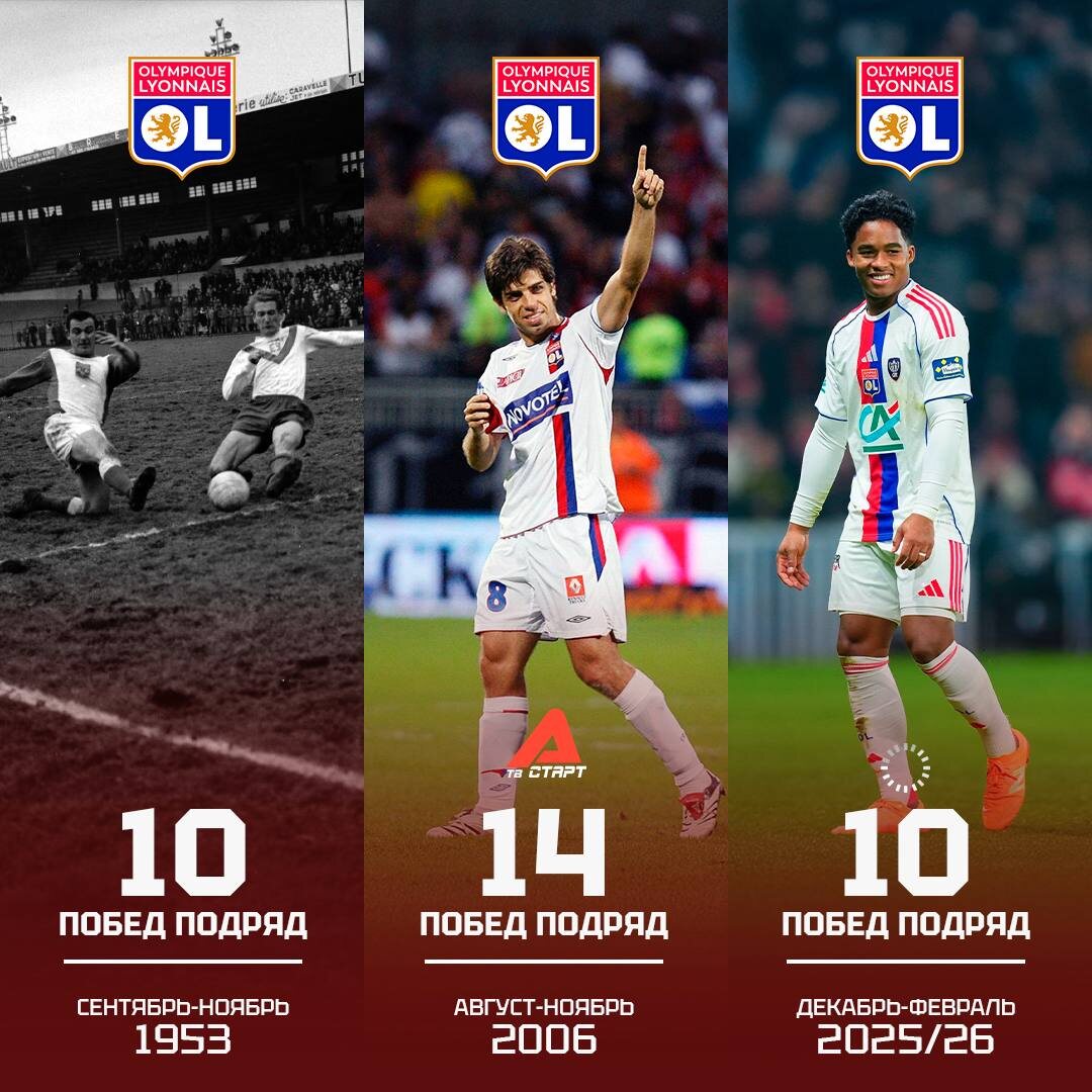 »! Только один раз за всю историю клуба «львы» побеждали в большем количестве матчей подряд. И было это 20 лет назад! Сегодня — новое испытание для команды. Придётся сразиться с «Лавалем» в Кубке Франции 🏆🇫🇷 Не пропустите эту игру в 22:30 на TVSTART.RU или смотрите за ней и ходом других встреч онлайн во время эфира «Всё и сразу» на телеканале «Старт» 🖥️ Подписывайся на ТВ СТАРТ в MAX📲