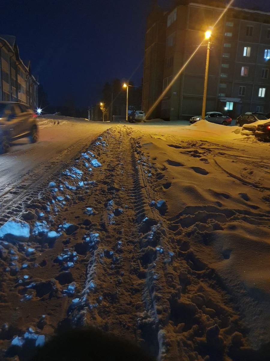 Вот такой тротуар, совсем не чищенный от кафе Среднеуральское в гору к больнице, пишет подписчик.