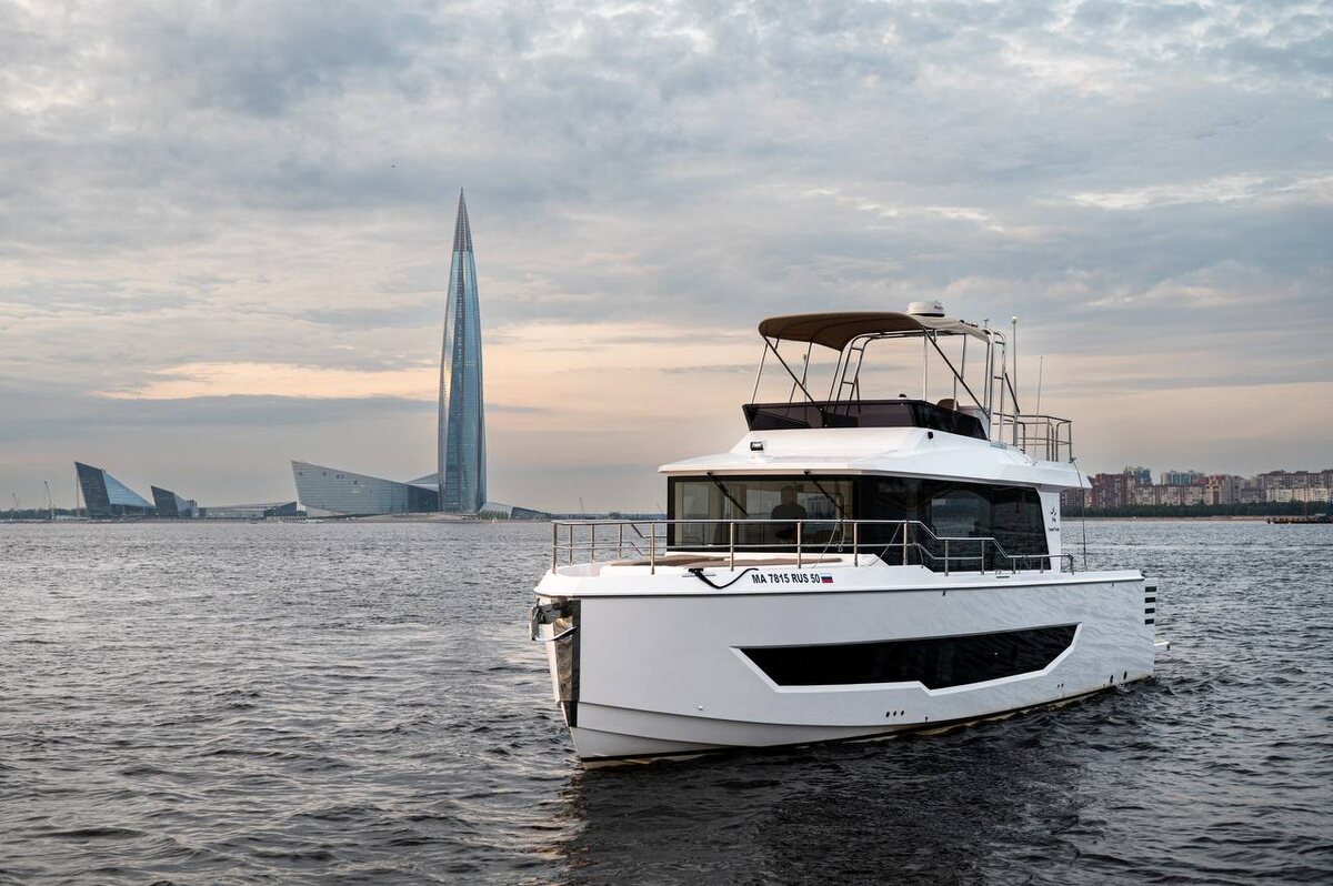 Друзья, в категории «Иностранный гость» у нас настоящий тяжеловес. Это лодка, которая ломает стереотипы и доказывает, что современное судостроение Поднебесной — это уже не "попытка копировать", а собственный, мощный стиль. Встречайте — Eastar Yacht TY460. По сути, перед нами Navetta (мини-траулер) длиной 46 футов. Это формат для тех, кто уже вырос из катеров выходного дня и ищет полноценную "виллу на воде". ⚙️ ТЕХНИЧЕСКИЙ ПАСПОРТ (ТТХ): Длина (LOA): 14.10 м — это полноценный круизер. Ширина: 4.30 м. Огромный "бим" дает колоссальный объем внутри. Осадка: 0.84 м. Позволяет заходить в любые бухты и реки. Запас топлива: 1500 л. Серьезная автономность для дальних переходов. Двигатели: В базе — стационары Mercruiser по 350 л.с. (суммарно 700 л.с.), но возможна установка дизелей Volvo Penta. ⚓ ГЛАВНЫЕ ФИШКИ: Архитектура корпуса: Вертикальный форштевень и высокие борта. Это не только брутальный внешний вид, но и практичность — носовая каюта получается максимально просторной, без сужения. П
