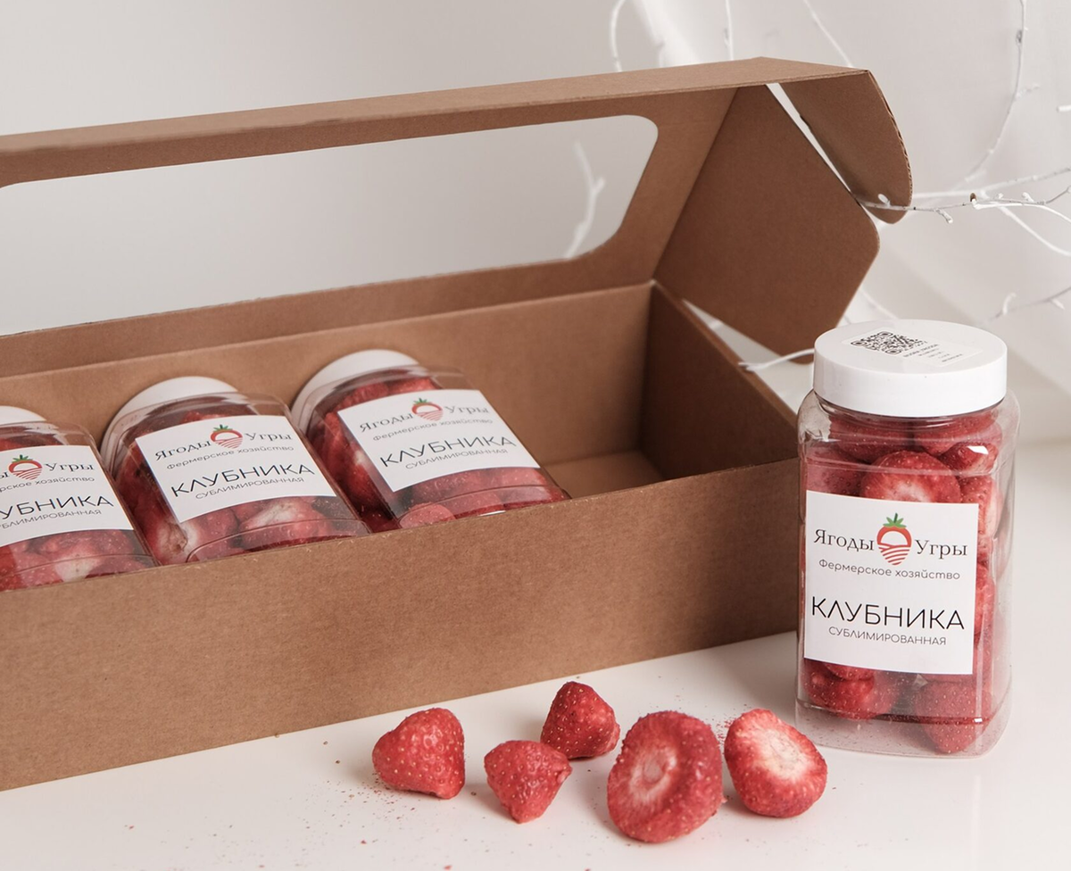 История развития «ягодного бизнеса» Екатерины и Кирилла Архиереевых из Калужской области началась с романтичного и вкусного знакомства. А навык партнерства и любовь к своему делу привели маленькое хозяйство «Ягоды Угры» на крупнейшую мировую выставку Gulfood в Дубае. Мы поговорили с Екатериной и Кириллом и узнали, почему вместо цветов лучше дарить ягоды, чем сублимированная клубника покоряет иностранцев и как государственная поддержка помогает малому бизнесу совершать большие рывки. Вы производите необычный продукт. Чем он отличается от обычной клубники или варенья? Это наша гордость — сублимированная клубника. Мы занимаемся выращиванием ягодных культур. В частности, земляники садовой. Главное отличие — мы знаем о ней всё «от и до»: сами сажаем, сами ухаживаем, сами собираем. Все витамины и вкус сохранены, а храниться она может до двух лет. Это полезный и натуральный снек для всех. Правда, что ваша семейная история началась тоже с ягод? Говорят, первое свидание было с малиной вместо цв