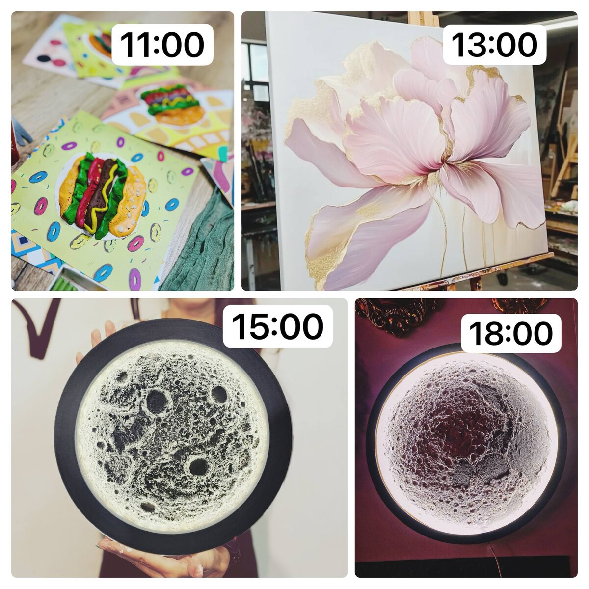 ) 11:00 «Креативный пластилин» , группа 4-6 лет. 13:00 живопись «Цветок». Интерьерная картина , холст на подрамнике 40*50 см 🪙2200 руб. 15:00 Фактурная живопись «Луна» . Декорируем светильник . 🪙3000 руб. 18:00 Фактурная живопись «Луна» . Декорируем светильник . 🪙3000 руб. Для записи и вопросов: 📞 +7 (992) 331-83-51 📧 @ArtAkadem66 🌐 https://t.me/art_akadem66 🌍https://vk.com/art_akadem