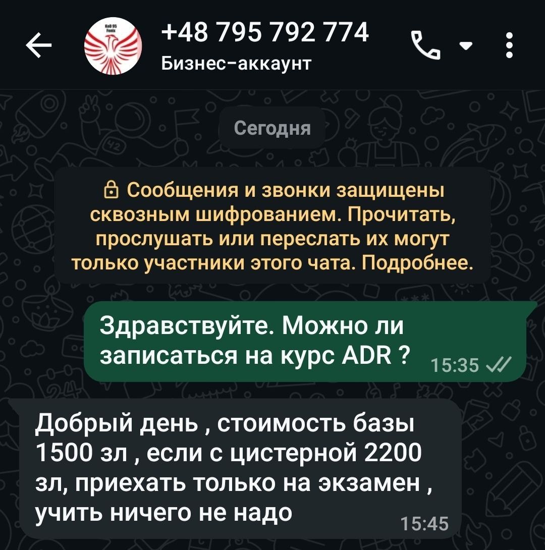 . Российский ДОПОГ здесь проходит. У меня есть. Расценки "Феникса" на экране. В Best Driver озвучили 850 Злотых, но там даты не подходят (например, 12-14 февраля) #допог #adr