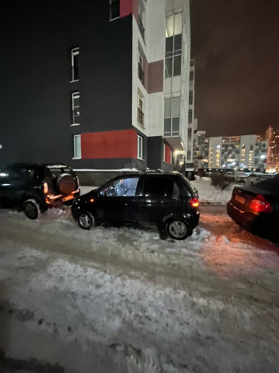 На углу столичной 14 стоит Матиз со включены светом и открытой водительской дверью. Два раза пинал по колесам ни кто не вышел((