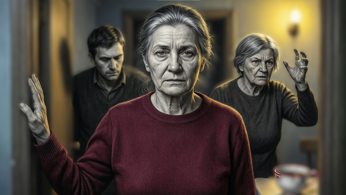 Анна повернулась, посмотрела на эту сцену. Валентина Петровна была полной женщиной с короткой седой стрижкой, в коричневом кардигане и тёмно-синих брюках. Лицо у неё было широкое, с мелкими морщинками вокруг глаз и рта, губы плотно сжаты. Дмитрий сидел, опустив голову, и Анна вдруг увидела в нём не шестидесятилетнего мужчину, а испуганного мальчика.