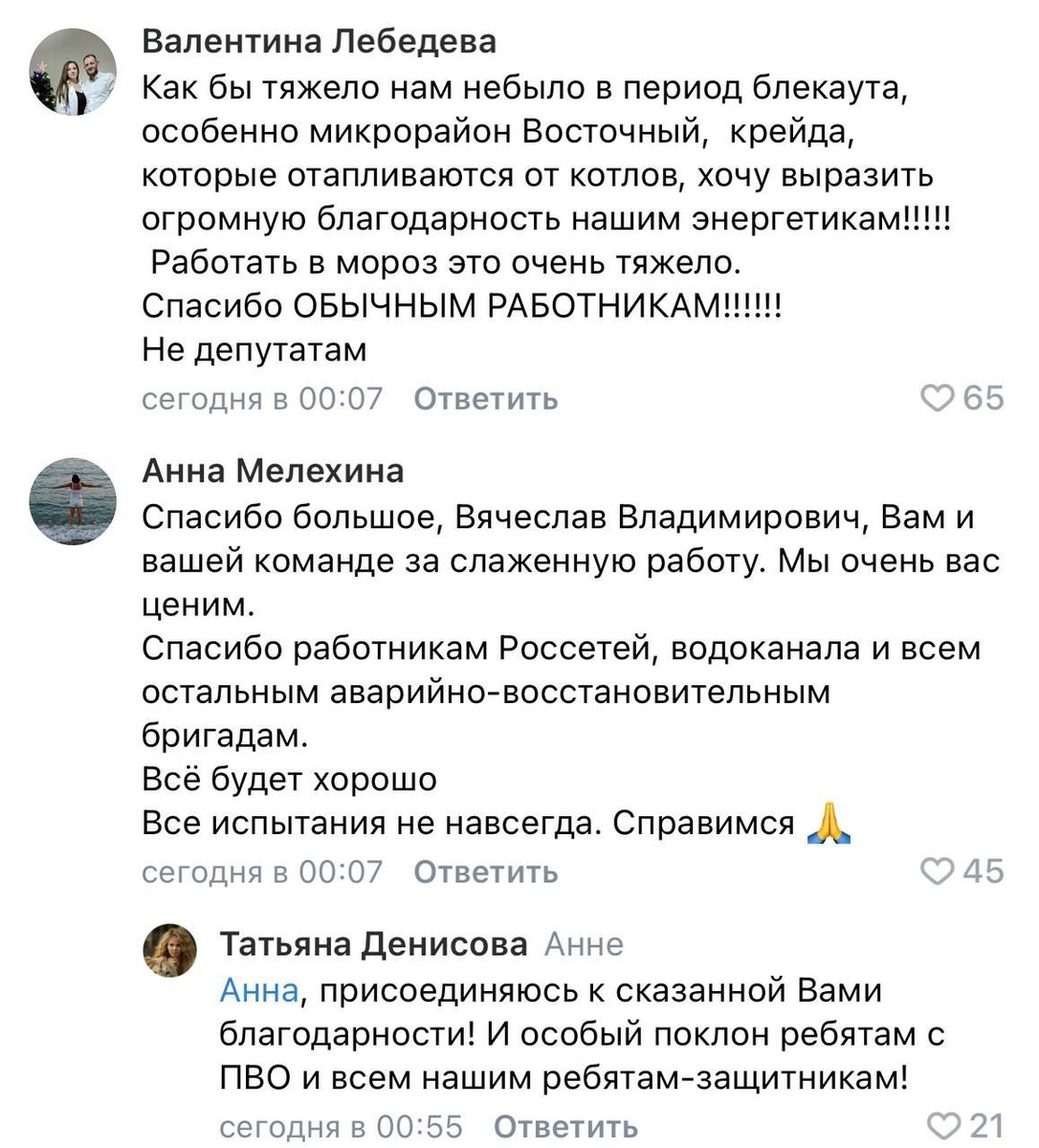 Жители Белгородской области выразили глубокую признательность и восхищение сотрудникам энергетической отрасли