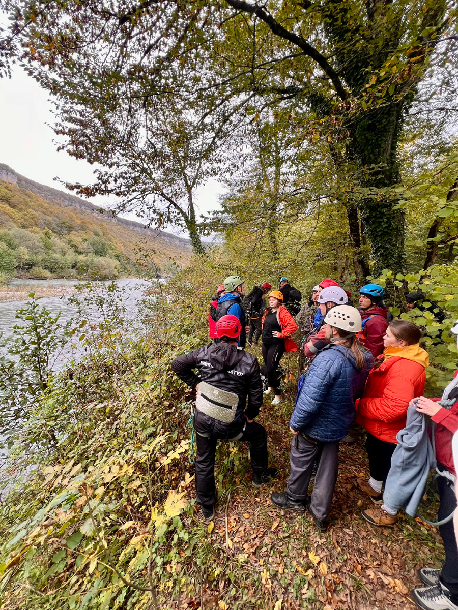 На Сборах инструкторов кроме узлов, ориентирования и спусков по веревкам мы отрабатывали переход реки вброд.