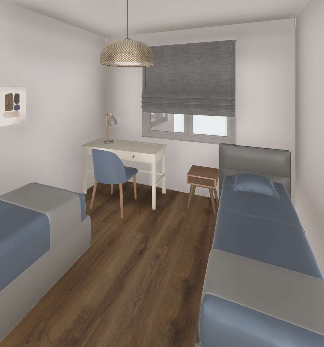 Записки Евгении… Как из картинки получается реальность? Обожаю программку, в которой работаю и расставляю всю мебель, там же и подбираю цвета. Поняла, что без нее что-то делать по ремонту очень сложно. Ты можешь сам, что угодно напридумывать себе в голове, думать, что ВОТ ТАК будет красиво, но 100% что-то пойдет не так. Каждый ремонт сам по себе особенный, со своими размерами и задумками, а мне еще всегда интересно попробовать новые материалы, товары, мебель. Выискиваю идеи и воплощаю их. И вот без 3D-моделирования я бы точно не справилась. В этот раз я тоже все отрисовала, продумала нюансы и начала воплощать все в жизнь. Как же приятно постепенно наблюдать, что из этого всего получается. Вчера мы расставили мебель во второй спальне. Повесили римские шторы. Они двойные: у них есть тюль и основная штора. При этом основательное металлическое крепление, не то что у обычных рулонных штор. Очень надеюсь, что они выдержат всех наших жильцов. В этот раз кровати тканевые - серый велюр. Реш
