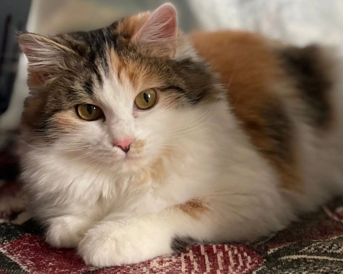 Пушистая, с красивой трехцветной шерсткой и большими глазками. Не кошечка, а мечта!
