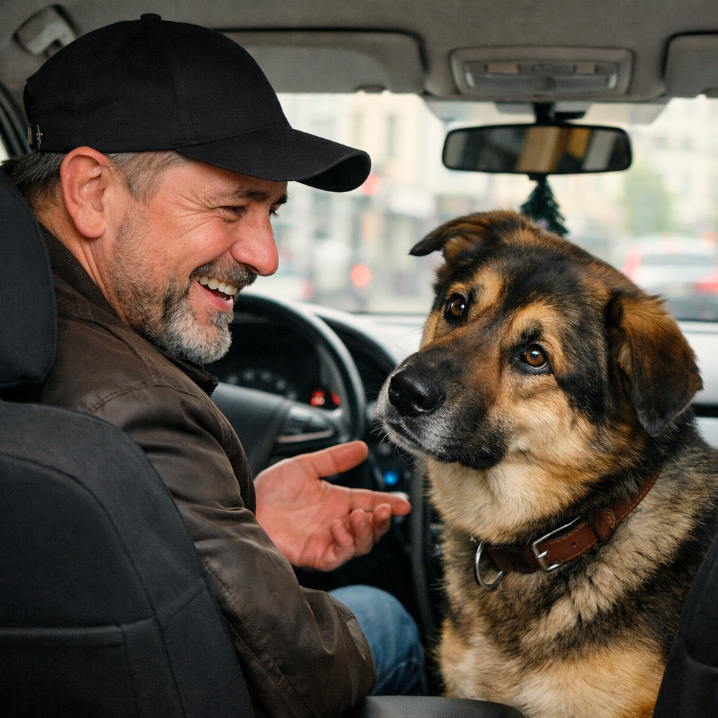 Пёс посмотрел на меня, потом на водителя, потом… неожиданно лизнул его в ухо. Очень по-деловому. Без романтики, чисто по факту.