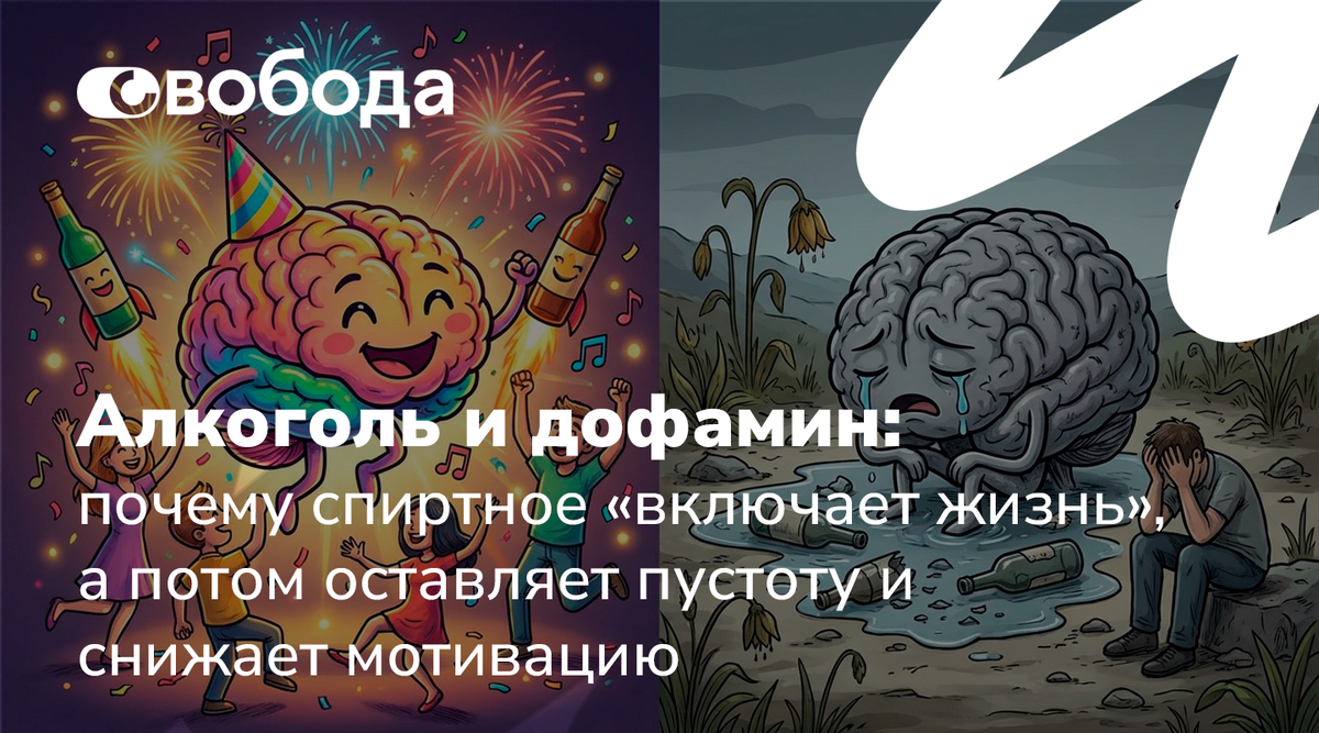 Ниже — что такое дофамин, почему алкоголь кажется спасением, как формируется «провал» после него и что помогает вернуть нормальную способность радоваться без спиртного.