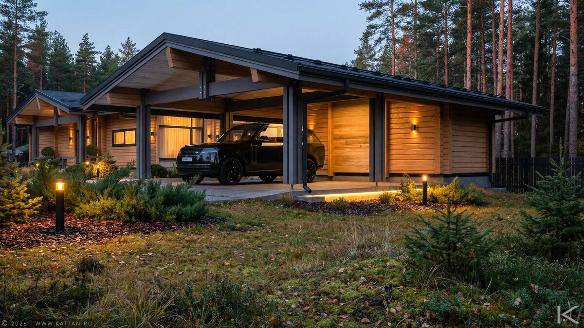 Клеёный брус — это не просто материал. Это диалог между технологией и лесом: прочность инженерии + тепло живой текстуры. Наш навес — продолжение дома, а не технический элемент. Это когда архитектура не прячется за гаражными воротами, а становится частью пейзажа. Проект — договорённость между человеком и пространством. #КатанАрхитектура #ДеревяннаяАрхитектура #КлееныйБрус #НавесМечты #АрхитектураНаПрироде