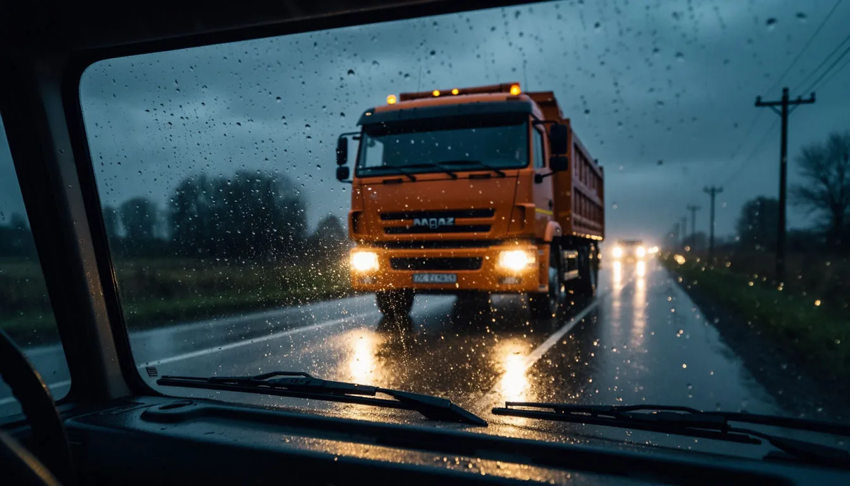 Буря была не просто дождём. Это была плотная, яростная стена воды, обрушивавшаяся на лобовое стекло массивного «КамАЗа», будто пытаясь пробить его насквозь. Виктор Петрович, мужчина пятидесяти пяти лет с руками, покрытыми мозолями, и взглядом, закалённым миллионами километров одиночества, сжимал руль так, что кости белели. Рёв дизеля и гипнотический ритм дворников служили единственной компанией на этой просёлочной дороге, забытой и Богом, и дорожными службами.