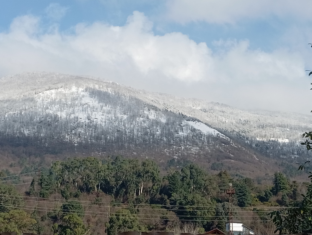 Ночью в горах выпал снег. Кажется, что немного, но утром на улице было довольно таки прохладно, +2С