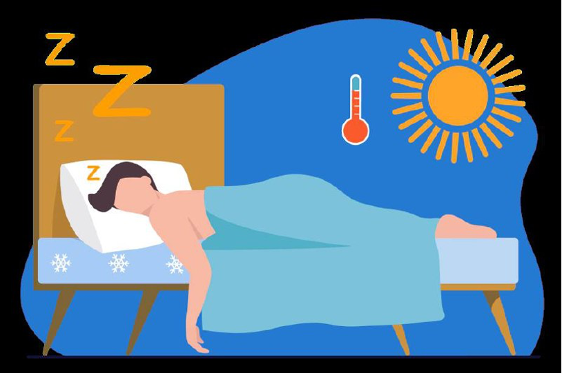 Немногочисленные данные указывают на то, что высокая температура в ночное время нарушает качество сна, мешая полноценному восстановлению, что может повышать риск заболеваний нервной и сердечно-сосудистой систем, особенно в уязвимых группах населения. Снижение температуры тела перед отходом ко сну и во время сна осуществляется за счет циркадных (суточных) ритмов и необходимо для засыпания и поддержания правильной архитектуры сна.