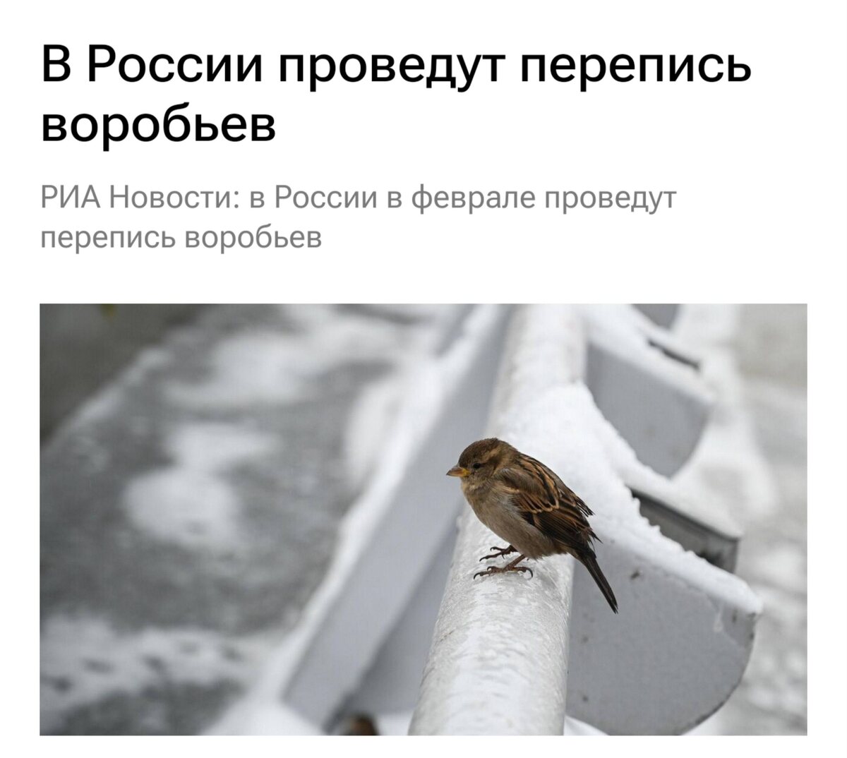 Всероссийская перепись воробьёв пройдёт с 7 по 15 февраля — птиц будут считать на кустах.