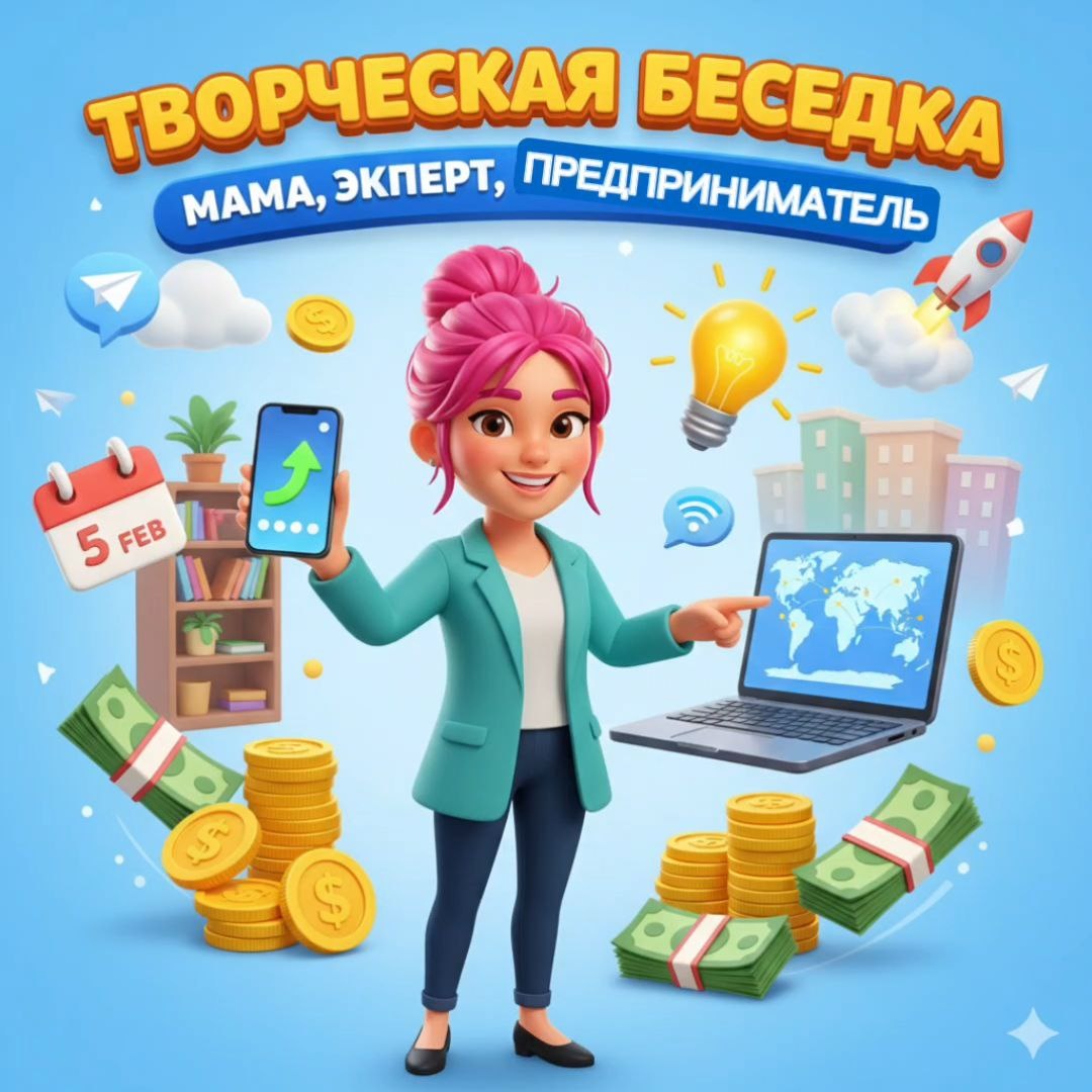 … Особенно если ты мама, творческий человек, да ещё и хочешь делать что-то по‑новому и для себя, и для мира. В этот четверг, 5 февраля, в 12:00 (мск) / 11:00 (Киев) в “творческой беседке” обещает быть особенно душевно. Марина Хан - психолог, звукотерапевт и дизайнер, и гость встречи Елена Дорофеева - коуч‑трекер, наставник по мышлению, проводник в трансформационной игре - ждут на откровенный и домашний разговор, где ценится не “замечательный опыт”, а честные вопросы и свои поиски. Поговорим, например, о том: 🟣 Как маме четверых (!) детей найти время на семью и всё-таки дописать свою первую книгу - с маленькими хитростями современных технологий. 🟢 О способах тратить меньше сил и часов на ежедневные дела, оставляя энергию себе и проектам (и не забывать о бизнесе 🚀). 🟠 Как не терять привычки, поддерживать себя и превращать мечты в простые шаги вместо “вечной завтра”. 🔵 О вариантах монетизировать свой опыт не по учебнику, а в своей реальности. 🟡 И о том, как технологии путь только