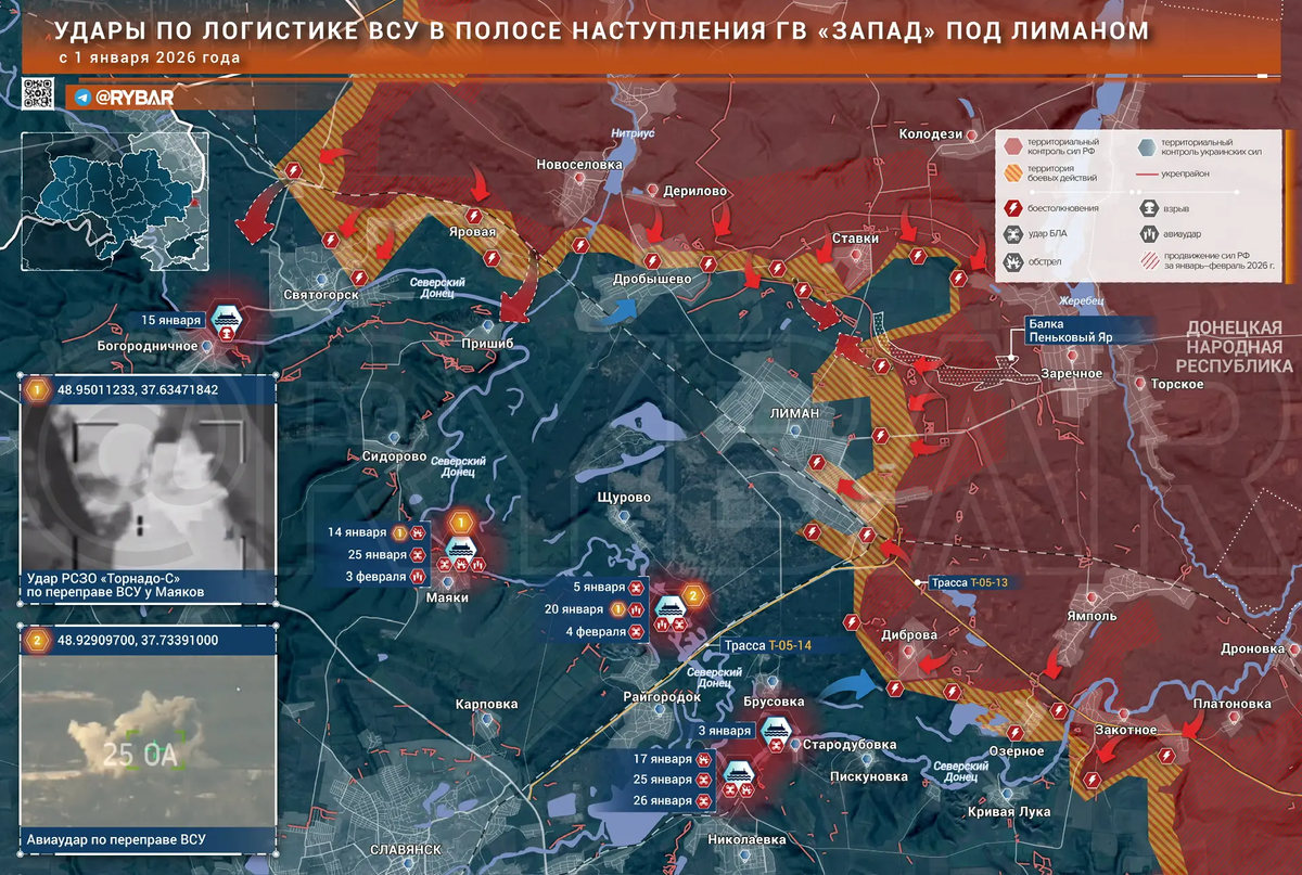 🔸Вместе с изоляцией поля боя под Константиновкой российские войска реализовывают подобный замысел под Лиманом. Подразделения ГВ «Запад» всеми доступными режут логистику ВСУ пытающихся пересечь Северский Донец. Систематическое огневое поражение понтонных и насыпных переправах дает свои плоды. Подробнее о результатах таких ударов рассказали в нашем канале в МАХ.
