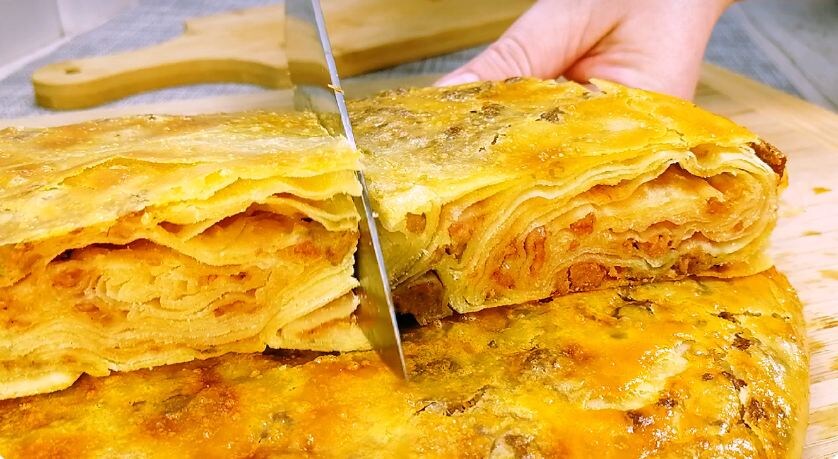 Хочу поделиться рецептом одной из наших семейных любимиц — большой, сытной и очень ароматной лепёшки с мясом, которую у нас называют катлама. Я готовлю её не так уж часто, обычно когда жду гостей или хочу сделать обычный ужин чем-то особенным. Она хороша тем, что в ней нет ничего сложного: простое тесто на кефире и привычный мясной фарш. Но когда всё это собирается вместе и отправляется в духовку, получается по-настоящему праздничное и очень сытное блюдо, которое не стыдно поставить в центр стола. Идеально подходит к чаю, к легкому супу или просто как основное блюдо. Давайте начнём с начинки, её лучше сделать первой, чтобы она успела немного остыть. У меня для этого блюда уходит примерно 500 граммов мясного фарша. Я чаще беру смесь говядины и свинины, но это дело вкуса. Для сочности и аромата я обжариваю две крупные луковицы, нарезанные мелким кубиком, до приятного золотистого цвета на обычной сковороде. Затем к луку добавляю фарш и обжариваю всё вместе на среднем огне, постоянно разби