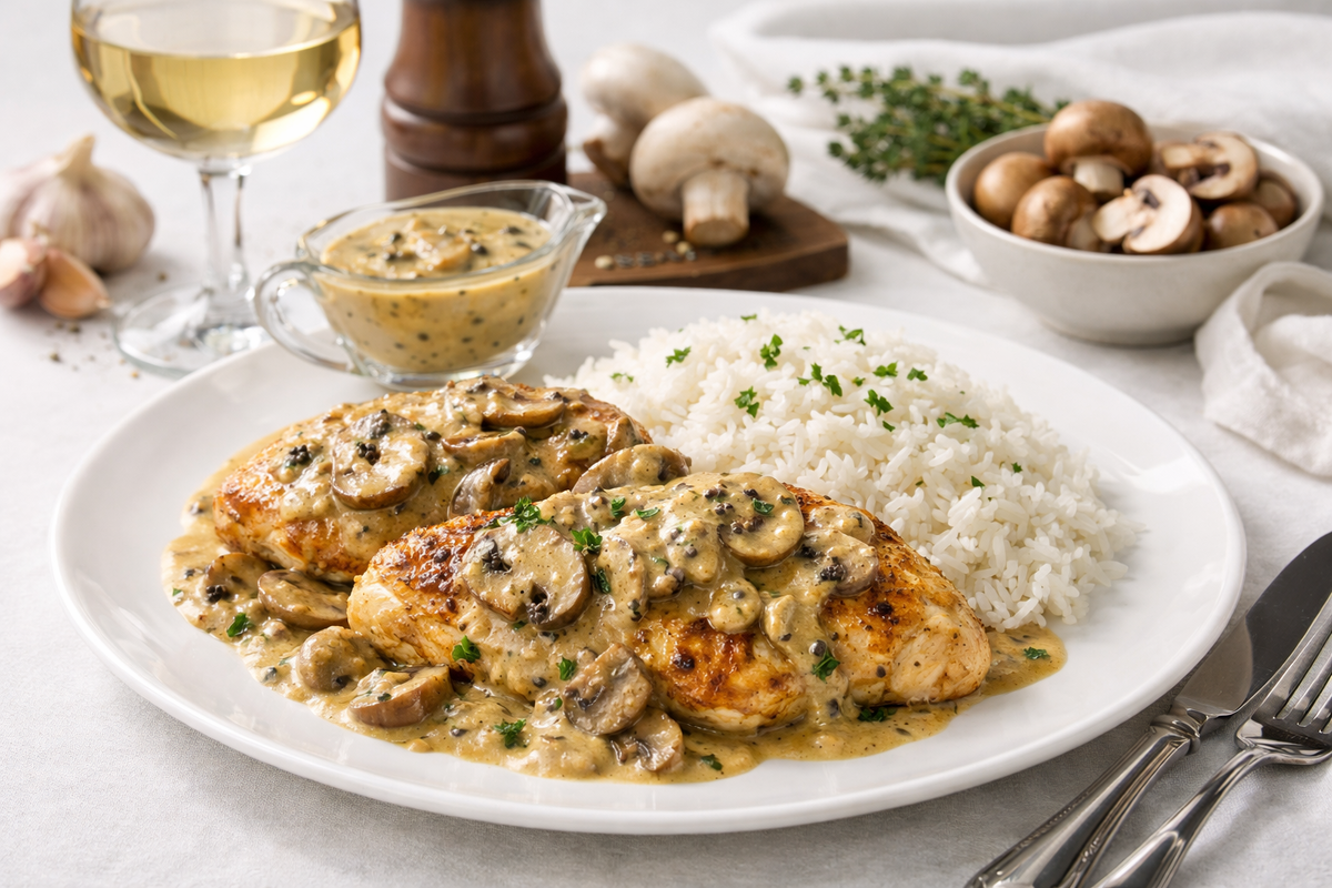 Есть блюда, где мясо - просто фон, а главная звезда - соус. Здесь именно так. Одна сковорода, понятные шаги и тот самый густой ароматный марсала-соус с грибами, который превращает обычную курицу в «праздник на тарелке». Подавайте с картофельным пюре или рисом жасмин - и никто не поверит, что это готовилось на будний вечер.