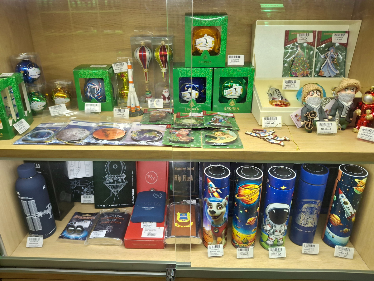 Перед тем, как выйти из музея космонавтики, мы зашли в сувенирный магазин. Выходим. На территории установлена подлинная ракета-носитель "Восток". Точно такая же ракета вывела в космос космический корабль «Восток-1» с Юрием Гагариным. Вид на территорию музея от ракеты. Поехали! Из музея зашли еще в сквер Мира с памятником Циолковскому. Здесь на фонаре (справа) обнаружили еще одного космонавтика. Вот он. «Космонавтик-ZENавтик». По пути домой зашли перекусить. А потом зашли еще на Театральную улицу. Она пешеходная. Скульптура «Мешок удачи». Часы. Скульптура изображает Константина Эдуардовича Циолковского с велосипедом. А рядом космонавтик с велосипедом. «Космонавтик Артём». Идем домой. В музее космонавтики в сувенирном магазине купили внуку коробочку с мелкими деталями. Дома внук собирал сначала по инструкции. Потом без инструкции. Главное, чтобы было много деталей :) На следующий день, 7 января, мы отправились в обратный путь. Домой.