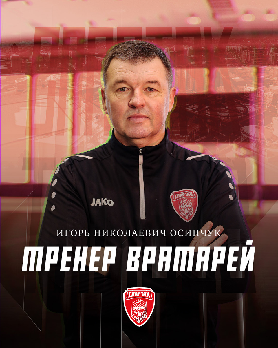 Футбольный клуб «Спартак» укрепляет тренерский штаб. Должность тренера вратарей займёт опытный специалист Игорь Николаевич Осупчук. Игорь Николаевич — воспитанник новороссийского футбола. Как футболист он провёл насыщенную карьеру, выступая за множество клубов в России и Казахстане: «Колос» (Краснодар), «Торпедо» (Таганрог), «Содовик» (Стерлитамак), «Энергетик» (Урень), «Есиль» и «Окжетпес» (Кокчетав), «Динамо» (Вологда), «Тобол» (Курган), «Восток» (Усть-Каменогорск). Этот уникальный игровой багаж позволяет ему понимать специфику работы вратаря изнутри, на собственном опыте. Международный тренерский путь