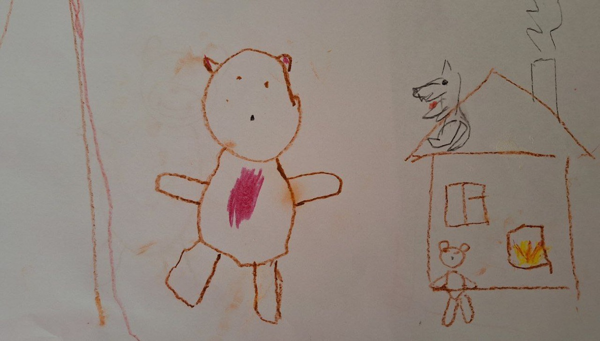 - Пожар: рисуем дом, далее огонь по частям - окошко горит, дверь и так далее. Приехала пожарная машина, рисуем лестницу, тушим пожар, дым пошёл и так далее.