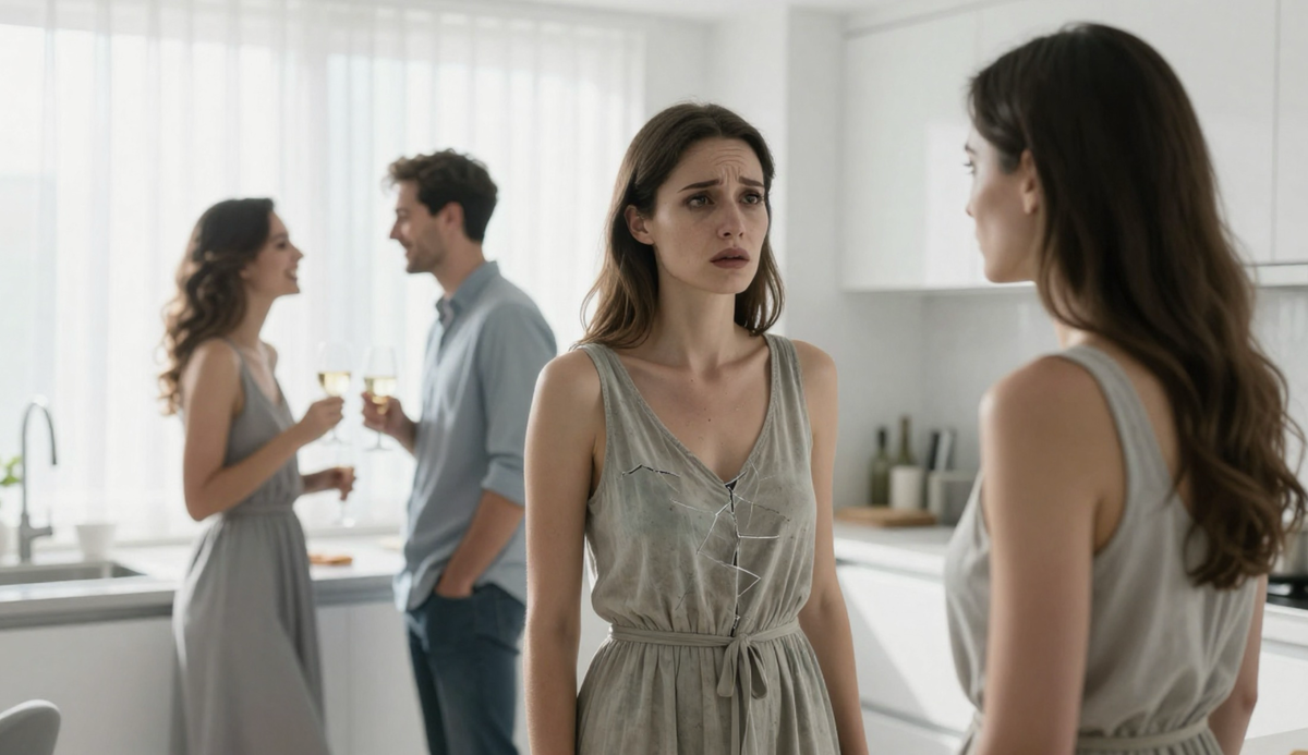 Вечером Марина стояла на коленях в прихожей, оттирая следы от сапог Ирины. Олег и Ирина сидели в гостиной, пили вино и обсуждали, какой кафель выбрать для «их» новой кухни.