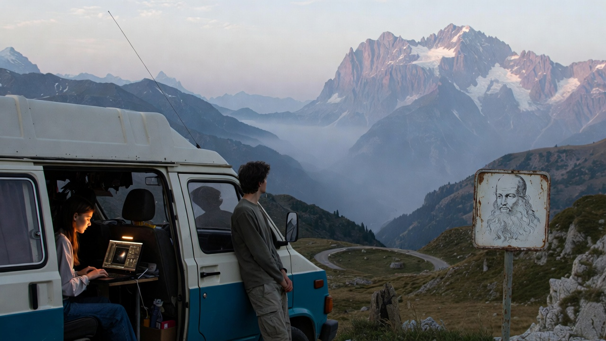 Следующий день они провели в лесу недалеко от озера Гарда, тщательно обыскав фургон на предмет жучков или GPS-трекеров. Ничего не нашли. Осмотрели и артефакты — ключ-печать, медную трубку, костяной цилиндр. Всё было чисто. Оставался самый тревожный вариант — их новые документы были «мечеными». От них нельзя было избавиться — без них они были никем, нелегалами в Европе. Риск приходилось принимать. Изменив план, они двинулись на северо-восток, в сторону Австрии, намереваясь через Тироль въехать в Швейцарию. Пейзажи менялись: сочные тосканские холмы сменились суровыми, величественными видами Доломитовых Альп. Дорога петляла серпантинами, уходя в облака. Это была естественная защита — здесь сложно было организовать засаду или незаметно следовать за кем-то. Но и бежать было некуда. На одном из перевалов, где они остановились, чтобы дать остыть двигателю и выпить кофе из термоса, Софья вдруг замерла, глядя на информационный щит для туристов. На нём, среди прочего, была старинная гравюра с из