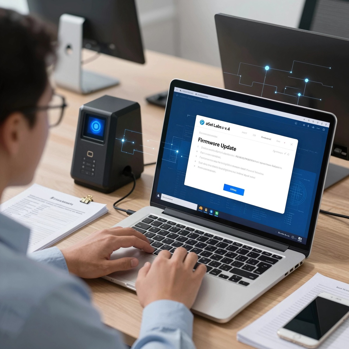 Перейдите на сайт https://asellabs.ru/update или по индивидуальной ссылке, полученной от поставщика. Скачайте архив или файл обновления. - Подключите устройство к компьютеру