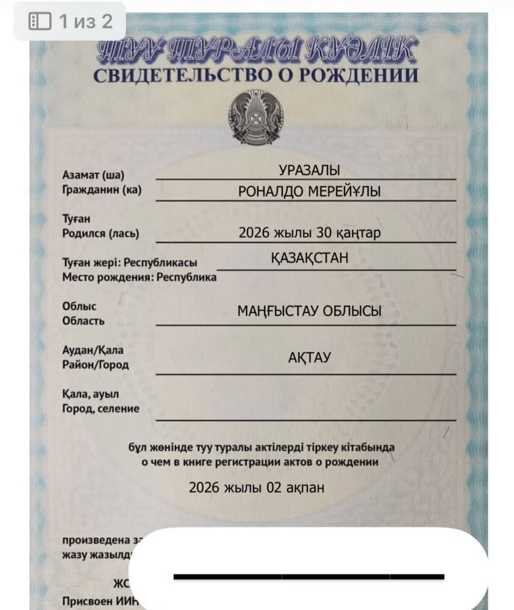 ! 👶 Блогеры из Казахстана Асель Еримбетова и Мерей Уразбеков назвали своего новорождённого сына в честь знаменитого футболиста Роналдо. 🇰🇿🇧🇷 «Уразалы Роналдо Мерейулы. Мы думали, что оставим выписку без шума. А вот у моего мужа дома был такой сюрприз… Счастье — это такие простые моменты», — написала Еримбетова в одной из социальных сетей, показав фото свидетельства о рождении. @russian_rt_sport