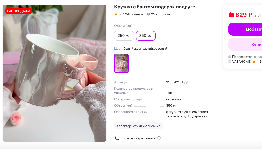 🍰 Кружка с бантом подарок подруге (Арт. 313892101)