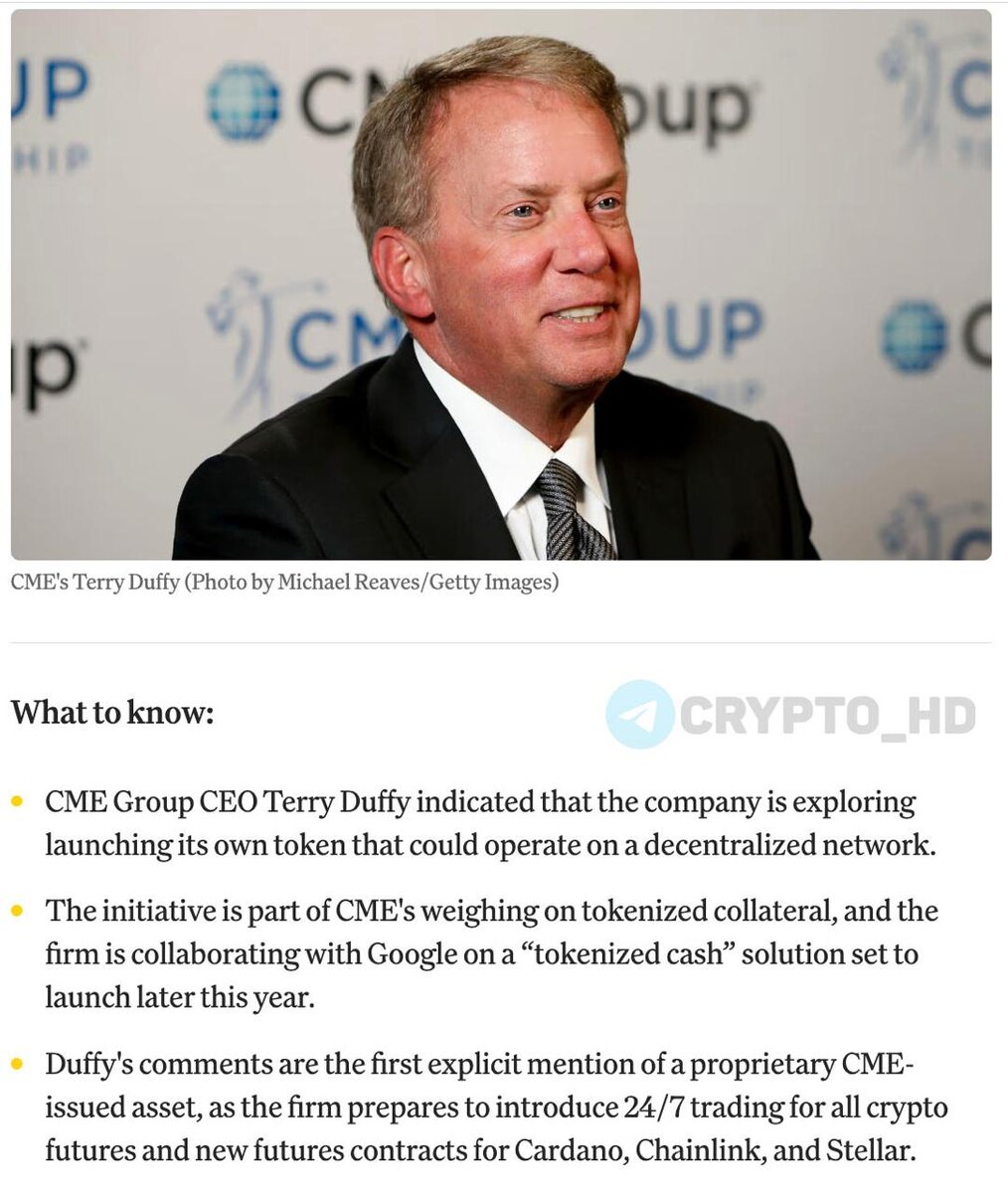 🔥🇺🇸 CEO CME Group заявил, что компания собирается выпустить собственный токен «CME Coin
