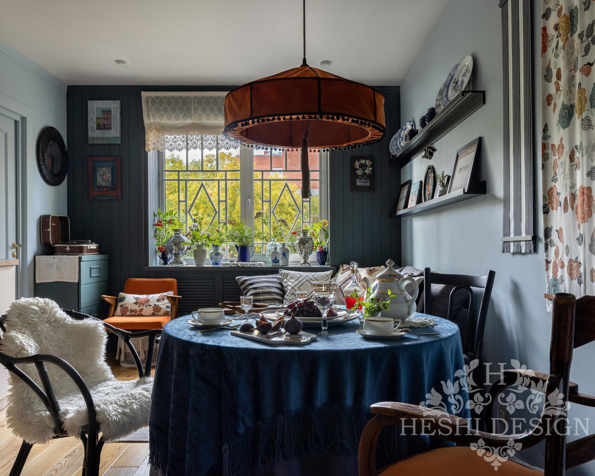 Второй столп — **дозированная ностальгия**. Не нужно вешать на стену все, что напоминает о детстве. Достаточно 2-3 сильных акцентов. Например, старинная дверь, превращенная в изголовье кровати, или коллекция вышитых полотенец в простых рамках. Остальное — намеки: фактура, цвет, запах дерева.