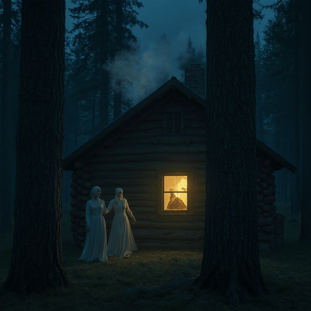 Пик странностей пришёлся на полнолуние в конце ноября. В ту ночь ауканье раздавалось уже не из леса, а прямо под окнами. Иван Сергеевич, перекрестившись, зажёг все керосиновые лампы в доме и достал старую икону. Андрей же, движимый смесью страха и научного интереса, прильнул к окну. И увидел. Между деревьями мелькали белые фигуры — три силуэта женщин в длинных, развевающихся на ветру одеждах. Они не шли, а словно скользили над землёй, двигаясь абсолютно синхронно. Но самое жуткое было в их лицах — вернее, в отсутствии лиц. Там, где должны были быть глаза, нос, рот, была лишь белая, размытая дымка.