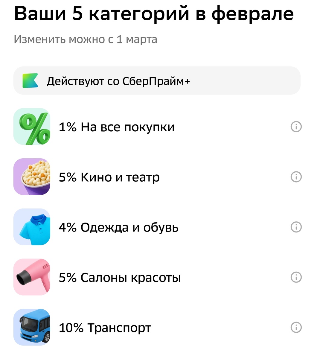 1. Сбер (дебетовая). Кэшбэк по подписке на «СберПрайм» — классика. Без него никуда.