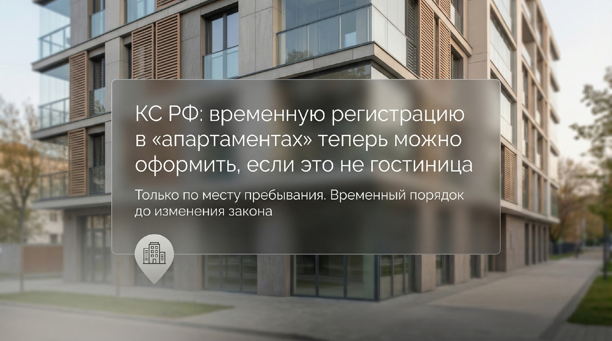 Живете в апартаментах, фактически там проживаете, но во временной регистрации отказывают, потому что помещение «нежилое». Мы уже разбирали, как суды и органы учета упирались в эту логику, и почему она превращалась в правовой тупик: https://dzen.ru/a/ZV9J_gpDXXpXavlq?share_to=link Теперь Конституционный Суд РФ наконец поставил точку: признал, что действующее регулирование не предусматривает регистрацию по месту пребывания в ряде «квартироподобных» нежилых помещений, и установил временный порядок до изменения правил. Ниже коротко и по делу: кому теперь можно, какие условия и какие документы понадобятся. Конституционный Суд РФ вынес Постановление № 4-П от 03.02.2026 и зафиксировал правовую позицию, которая меняет правила игры: пробел в регулировании признан неконституционным, а до внесения поправок установлен временный порядок регистрации. КС РФ прямо описал, что действующее регулирование фактически сводилось к двум моделям: И вот «апартаменты», которые не являются гостиницей, часто вып